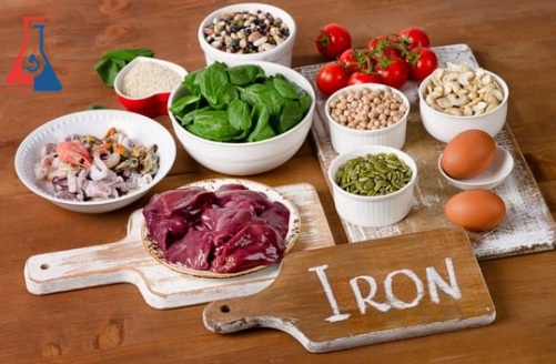 جگر، گوشت قرمز، غذاهای دریایی، سبزیهای برگدار تیره، عدس، لوبیا، تخمه کدو و غلات غنیشده از جمله غنیترین منابع آهن هستند. آهن موجود در منابع حیوانی جذب بالاتری دارد.